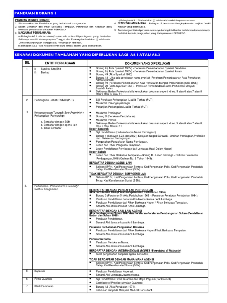 Perkeso Borang Pendaftaran Majkan Borang 1 Otosection